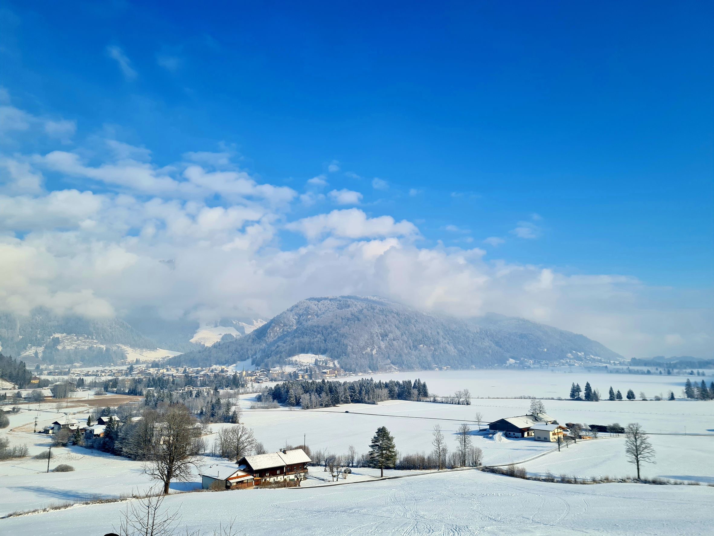 Am Fuße des Zahmen Kaisers, in einer Höhe von 700 m über dem Meeresspiegel, eingerahmt von grünen Wiesen und grasenden Kühen liegt unser Gästehaus.