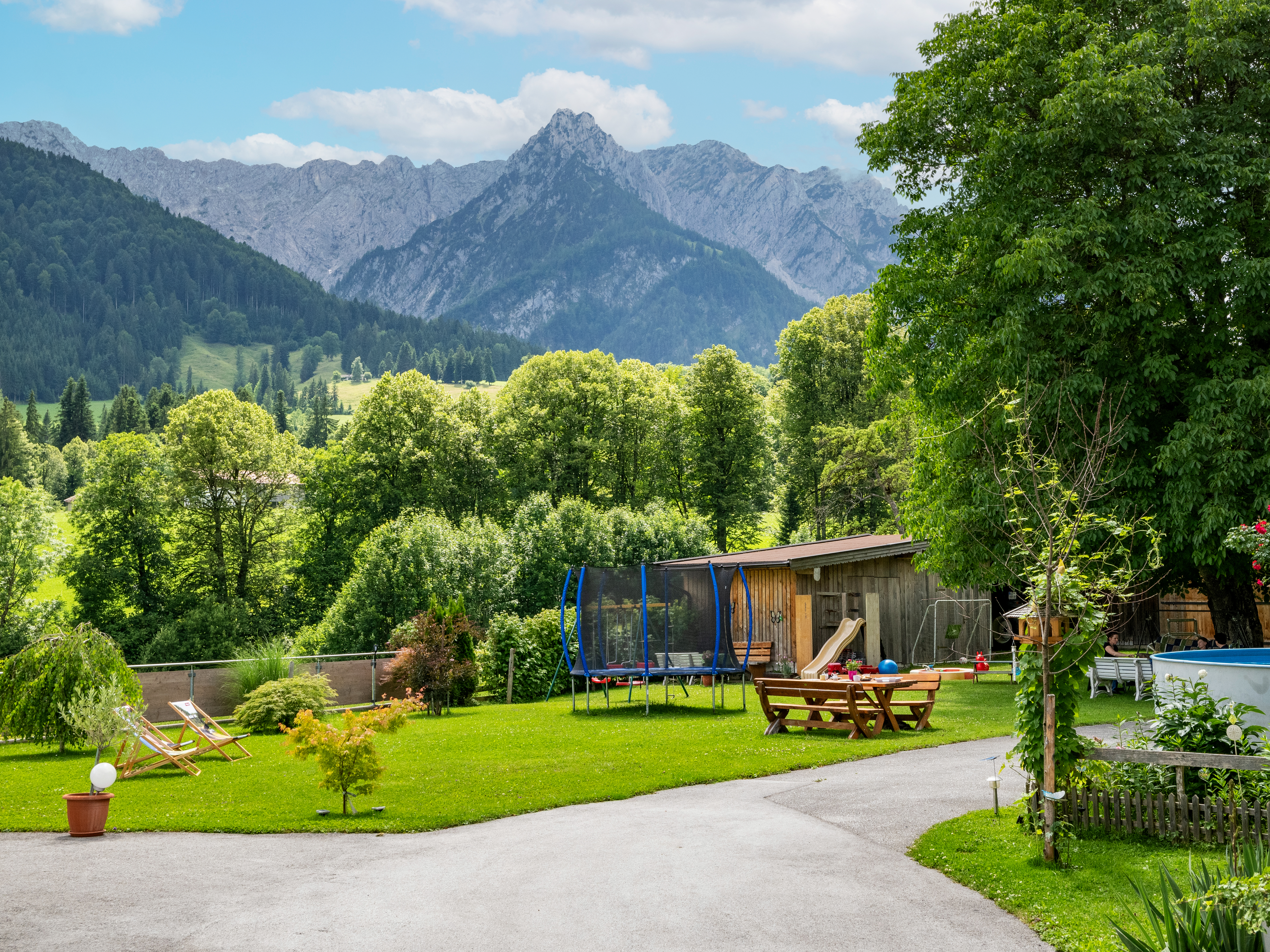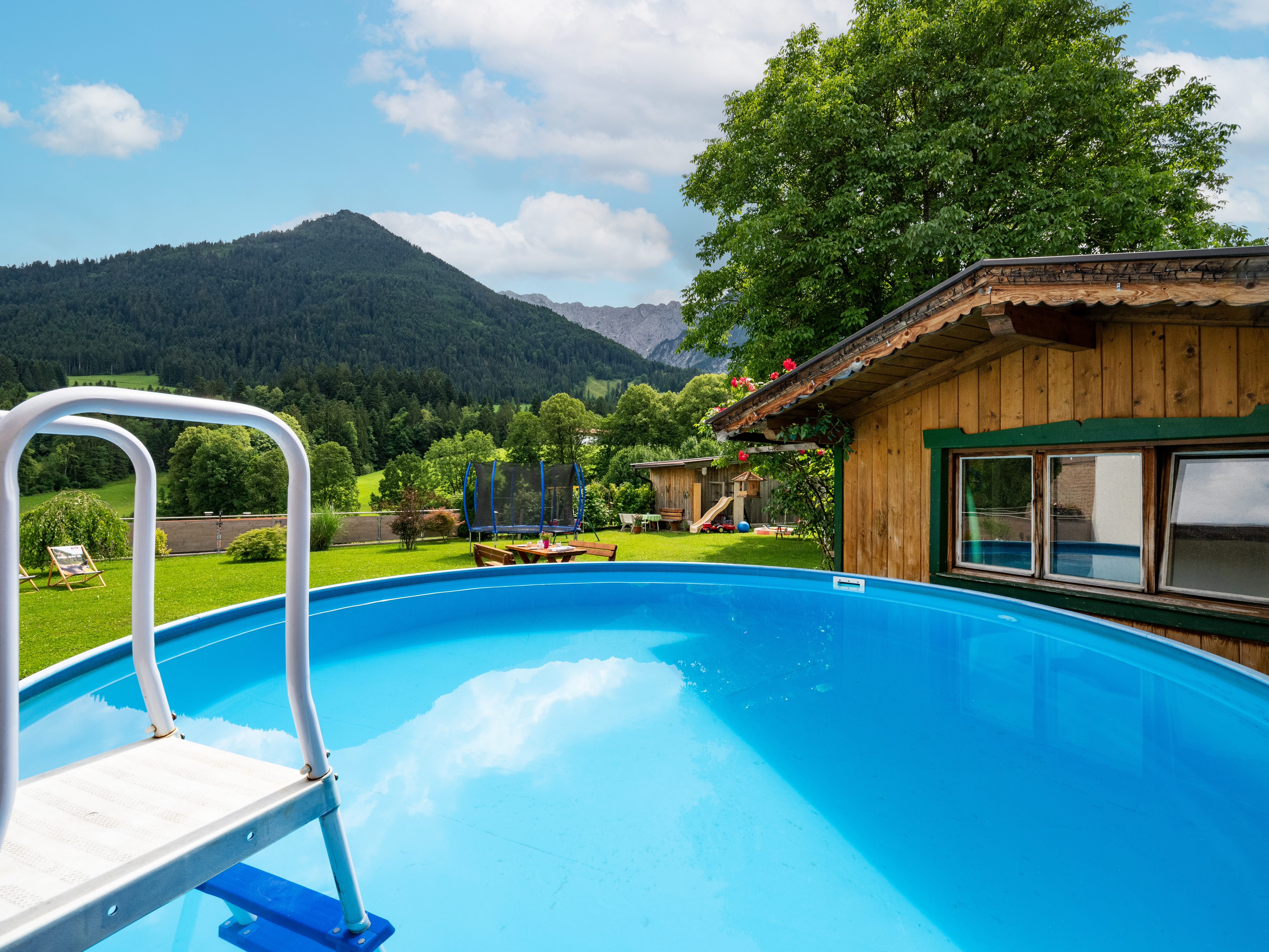- Zum Entspannen lädt unser großer Garten mit Terrasse ein, zum Abkühlen unser großer Swimmingpool (Durchmesser 4 m, Tiefe 1,25 m).